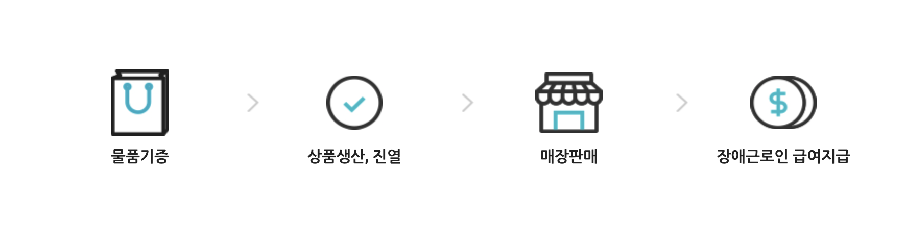 기증해주신 물건은 장애근로인들이 분류, 가격표 붙이기, 진열등의 과정을 통해 굿윌스토어 매장에서 판매가 되며 그 수익으로 장애근로인들에게 최저임금을 지급하고 있습니다.
