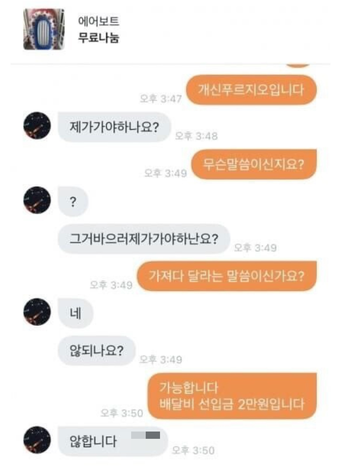 직접 중고 옷, 제품 가져다 주기