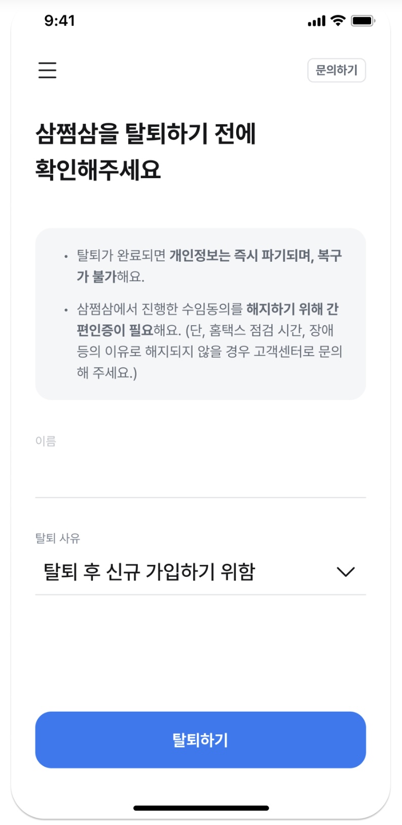 탈퇴하기는 로그인 후 좌측 상단의 짝대기 세 개 버튼을 눌러주세요.
