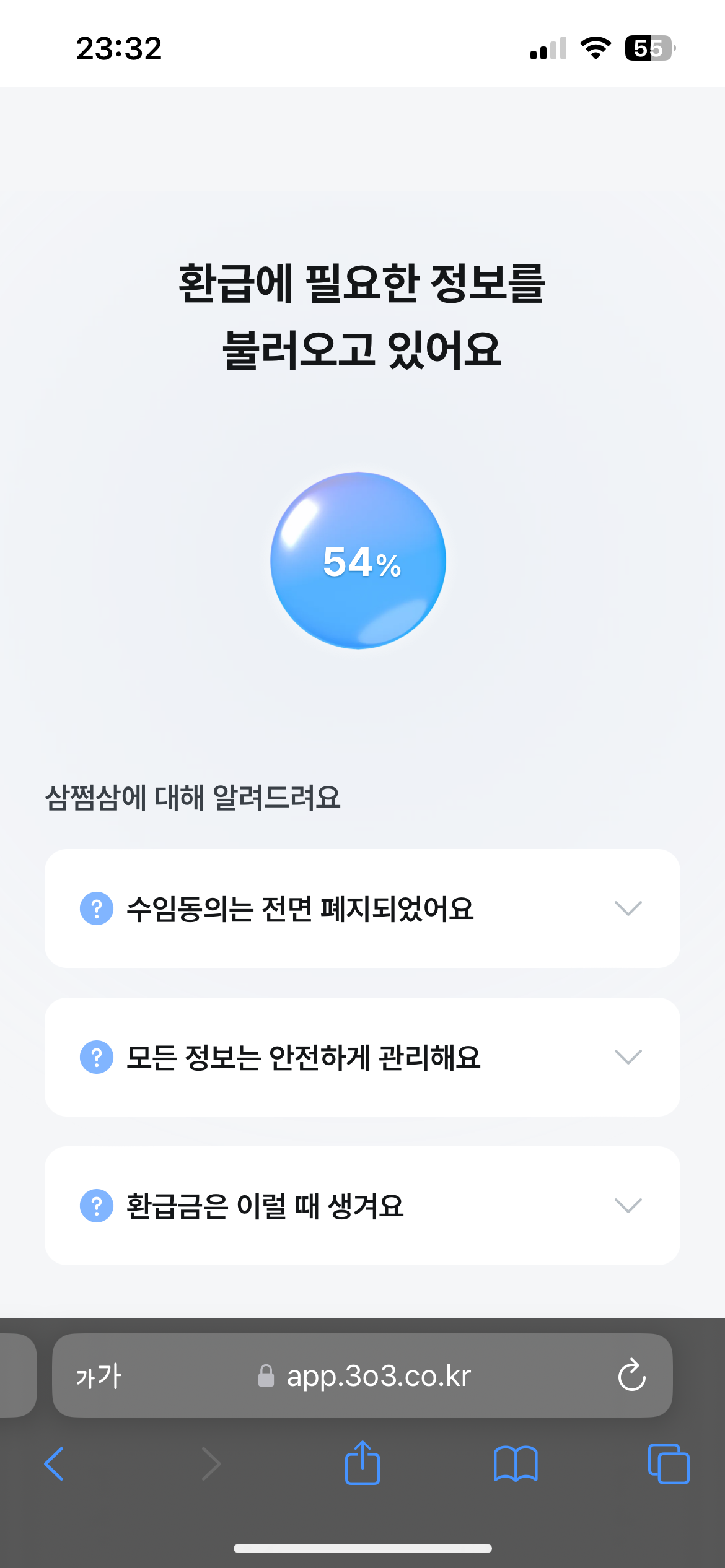 삼쩜삼은 환급 서비스 제공을 위해 수집하는 고객님의 개인정보는 '회원가입, 서비스의 이용, 상담' 등 서비스 제공을 목적으로만 사용되며, 개인정보처리방침 및 관계 법령에 따라 개인정보가 안전하게 관리될 수 있는 범위 외에 제삼자에게는 일체 제공되지 않습니다.